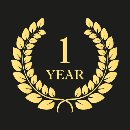 1周年記念月桂樹リースアイコンまたはサイン お祝いとお祝いのデザインのためのテンプレート 1周年記念ゴールデンラベル ベクトルイラスト のイラスト素材 ベクタ Image