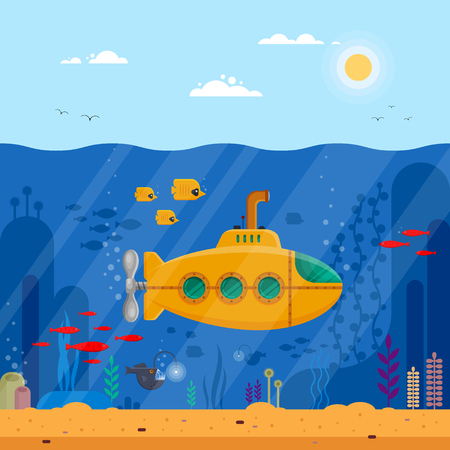 黄色い潜水艦海底のイラスト素材 ベクタ Image