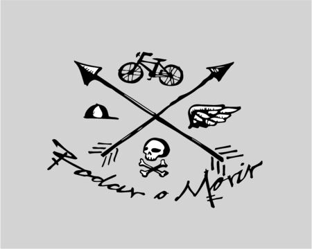 手描きの背景イラストや自転車 骨のペアとスペイン語 Rodar O 変え死ぬのフレーズとキャップの図面 どの意味に乗るか 死ぬのイラスト素材 ベクタ Image