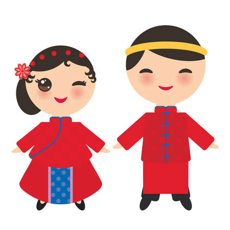 中国の伝統的な民族衣装の男女のイラスト素材 ベクタ Image