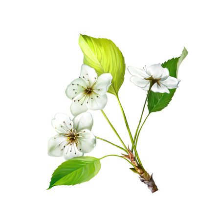 イラスト白背景のラスターに孤立した葉と桜 の写真素材 画像素材 Image
