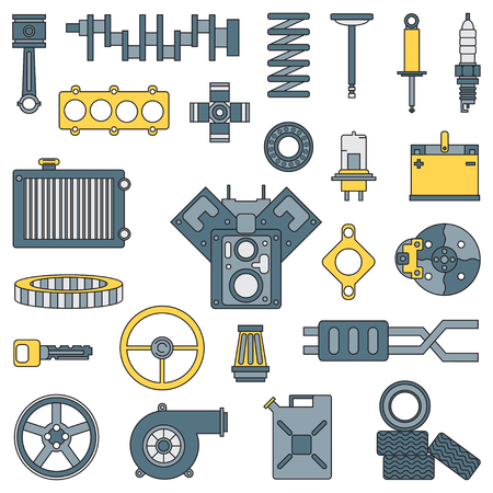 ライン フラット ベクトル アイコン車修理パーツ 電気ランプ 内部燃焼エンジンの要素 産業 漫画のスタイル イラストやデザインの要素 モノクロ オート サービス メンテナンス のイラスト素材 ベクタ Image