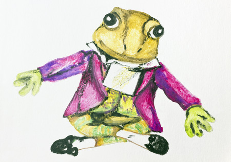 作曲家のモーツァルト カエルは分離の概念を抽象化します ホワイト ペーパー アートの背景に手作りの水彩画のイラスト の写真素材 画像素材 Image