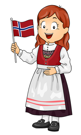 デンマークの民族衣装を着て デンマークの旗を握る子供女の子のイラスト の写真素材 画像素材 Image
