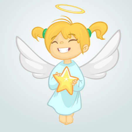 星を持つかわいいクリスマスの天使 ベクトルイラスト分離のイラスト素材 ベクタ Image