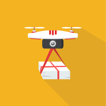 高速 無料配達 贈り物の概念 ベクトルイラスト ドローンが小包を配達するのイラスト素材 ベクタ Image
