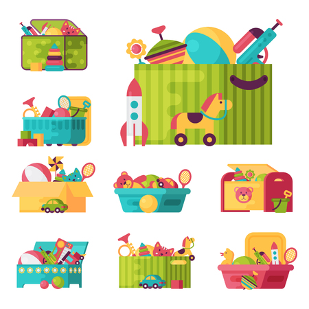 子供たちはおもちゃ箱のおもちゃでいっぱいです フラット モダン ベクター イラスト漫画アート のイラスト素材 ベクタ Image