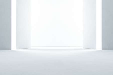 空の灰色のコンクリートの床と白い壁の背景を持つ近代的な大きなショールームの抽象的なインテリアデザイン ホールやステージ3dイラスト の写真素材 画像素材 Image